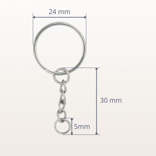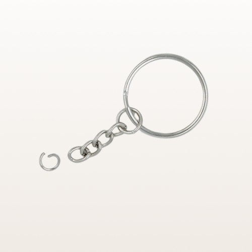 • Kółko ring płaskie z łańcuszkiem – kolor srebrny, średnica 25 mm