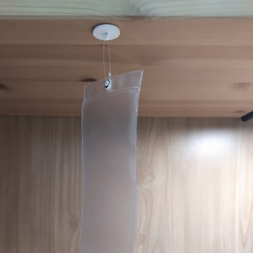 Pętelka spinająca 225 mm – przezroczysta żyłka do metek i etykiet – praktyczne zastosowanie, zawieszona na lampce