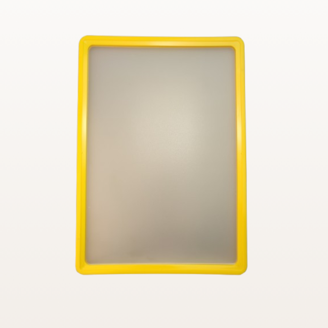 Ramka plakatowa A4 żółta, z kieszenią U - widok z przodu