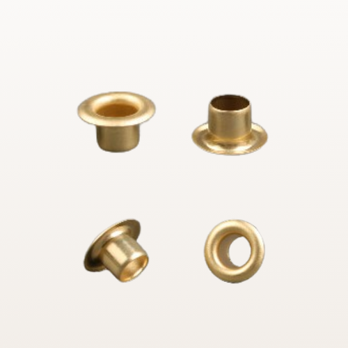 Zestaw zawiera 1000 sztuk nitów oczkowych kaletniczych w kolorze złotym o długości całkowitej 4,6 mm.