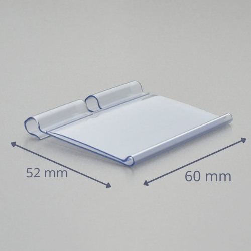 Cenówka 60x39 mm przezroczysta na hak T, zdjęcie poglądowe, widok pod kątem