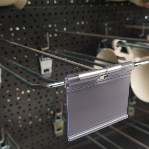 Przezroczysta zawieszka do etykiet cenowych, widok pod kątem, zbliżenie